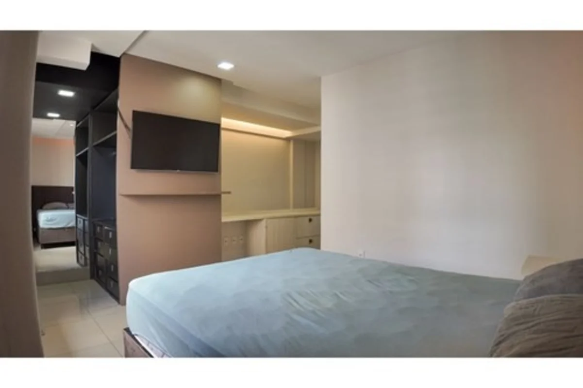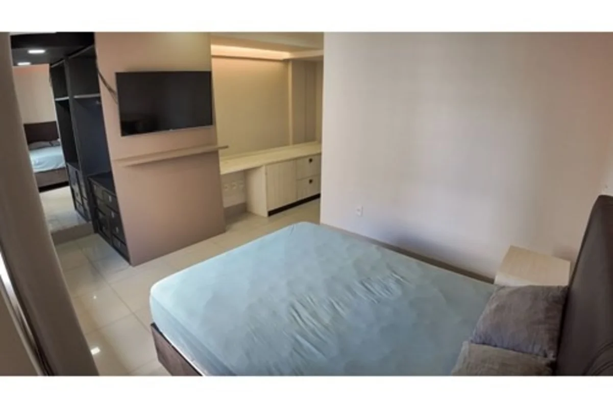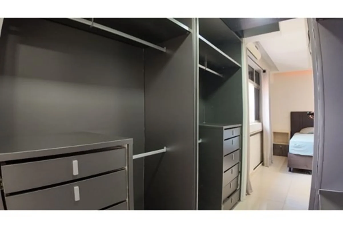 Quarto espaçoso com closet espelhado