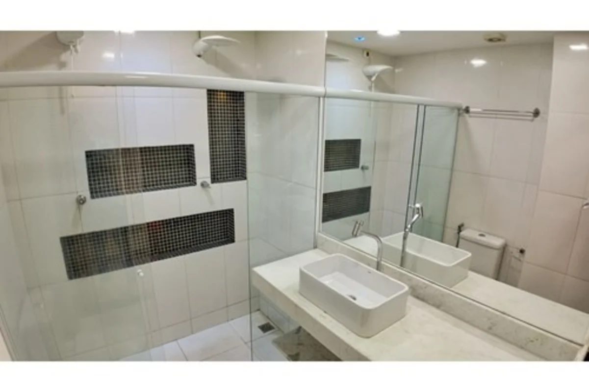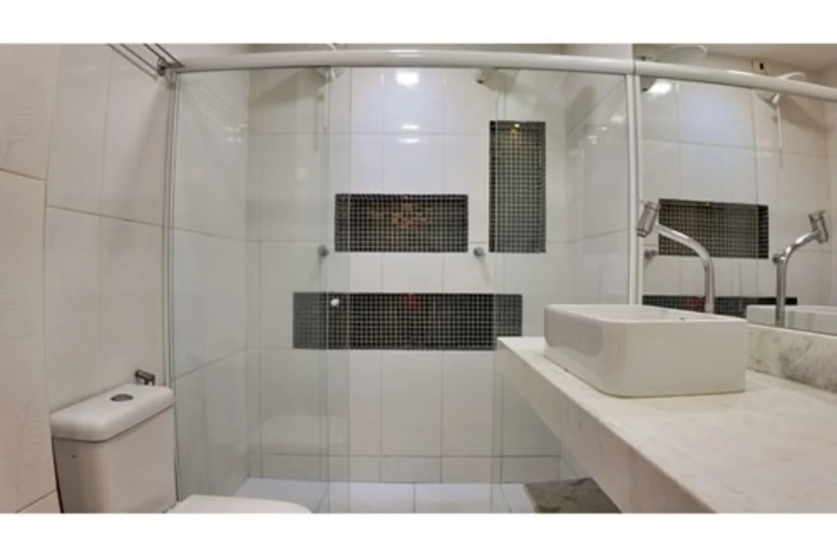 Banheiro com cromoterapia e duas duchas — acabamento de alto padrão