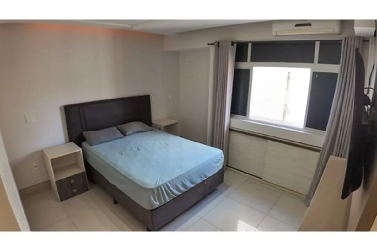 Semi-mobiliado (armários planejados, cama, sofá, cortinas, geladeira)
