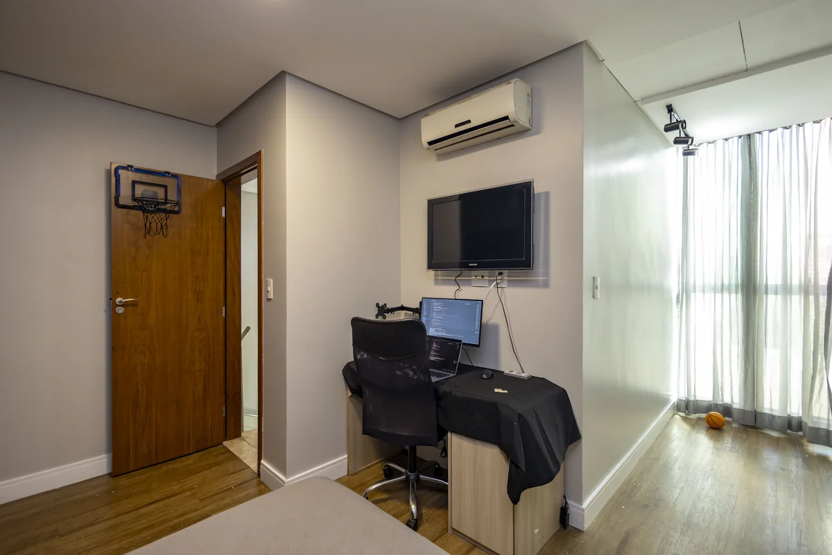 No piso superior, 3 quartos espaçosos, todos com guarda roupas, sendo um deles a suíte master, com varanda e hidromassagem para seus momentos de relax. Além dos quartos nesse mesmo piso, uma sala mais íntima para pessoas mais próximas.