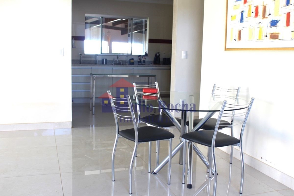 Sala com pé direito duplo para três ambientes (sala de jantar, sala de estar, sala TV), três quartos sendo duas suítes (uma delas reversível) (uma delas master com closet ) (as duas suítes do pavimento superior possuem varandas panorâmicas), ar-condicionado, armários planejados, amplo banheiro social com armário, cozinha planejada com muitos armários e despensa, área de serviço coberta e independente, dependência completa para empregada, possui garagem coberta para dois carros e dois descobertos, portão eletrônico.