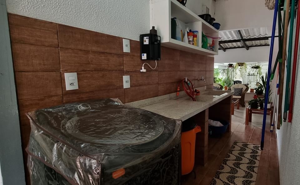 A suíte térrea oferece praticidade e conforto, enquanto a cozinha, equipada com armários modernos, proporciona funcionalidade e estilo. A copa adjacente é um espaço aconchegante para refeições mais informais. Da cozinha, você tem acesso direto a uma varanda externa espaçosa, equipada com uma churrasqueira, ideal para eventos ao ar livre e momentos de lazer. A área de serviço completa este nível, garantindo praticidade no dia a dia.